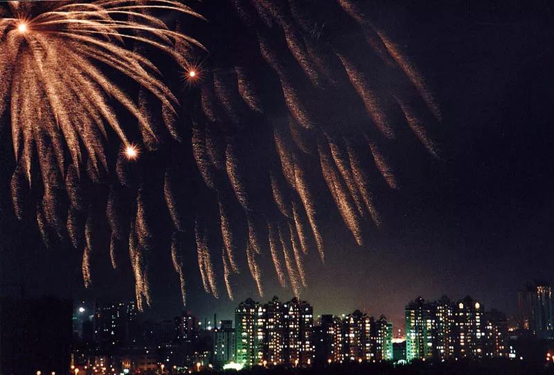 建議大家可以選擇在高處進(jìn)行拍攝,因?yàn)榭梢员苊庖恍┎槐匾那熬?,同時(shí)也可以將城市的景色納入畫(huà)面中。另外,拍攝地點(diǎn)盡量選擇在煙花燃放的側(cè)方或者是風(fēng)的前方,如果站在下風(fēng)口,燃放煙花的灰塵和煙霧會(huì)讓你受不了。