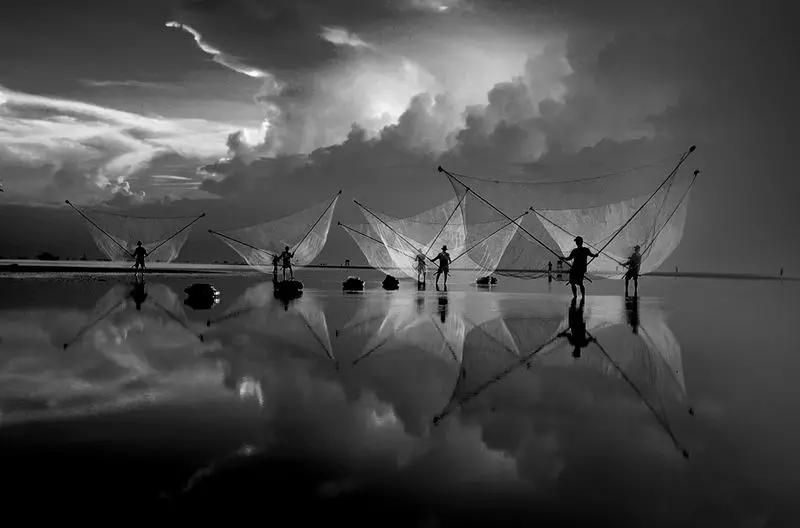 這張照片的關鍵是什么呢?就是他的倒影還還有她的影調,因為彩色的這些照片看的太多了,所以這張照片做成黑白的話,通過凸顯這個網(wǎng)的那些光與倒影構成的影調還不錯。