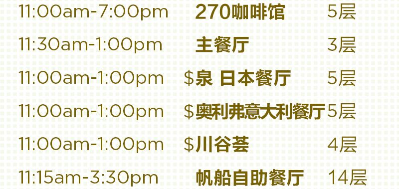 至于收費餐廳,無論是鐵板燒、大董意境坊、牛排燒烤餐廳還是海涵火鍋,都是只有在晚餐時段才會開放的呢~