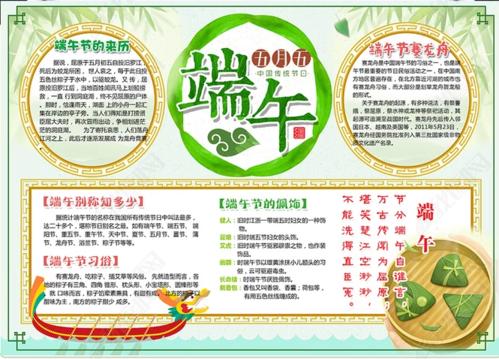 “棕子香,香廚房;艾葉香,香滿堂;桃枝插在大門上,出門一望麥兒黃;這兒端陽,那兒端陽,處處都端陽?!边@首童謠所唱的便是中國的傳統(tǒng)節(jié)日"端午節(jié)”。