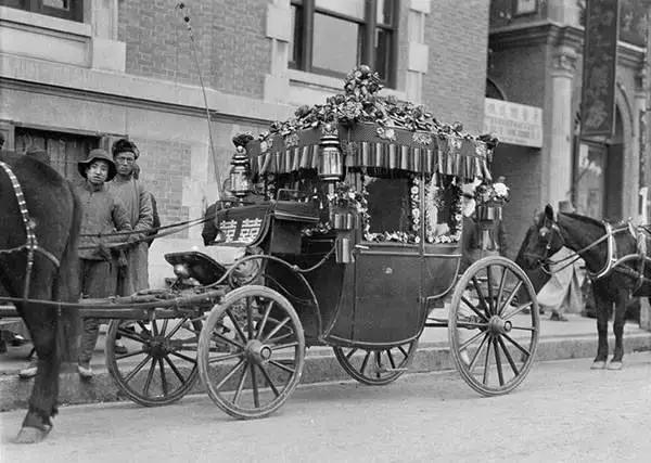 天津,東馬路青年會(huì)門前等待新人的馬拉轎車