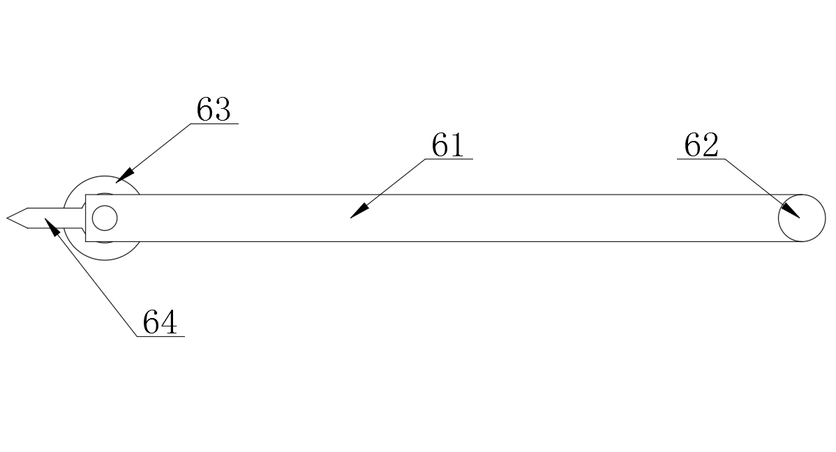 所述指向件(6)包括連接桿(61),所述連接桿(61)一端設(shè)有定位柱(62),所述連接桿(61)另一端設(shè)有固定吸盤(63),所述固定吸盤(63)與連接桿(61)之間設(shè)有指示標(biāo)(64),所述定位柱(62)中部開設(shè)有轉(zhuǎn)向槽(65),所述連接桿(61)與定位柱(62)連接處設(shè)有第一通孔(66),所述連接桿(61)另一端固定設(shè)有固定柱(67),所述固定柱(67)遠(yuǎn)離連接桿(61)一端與固定吸盤(63)固定連接,所述指示標(biāo)(64)與固定柱(67)連接處開設(shè)有第二通孔(68)。