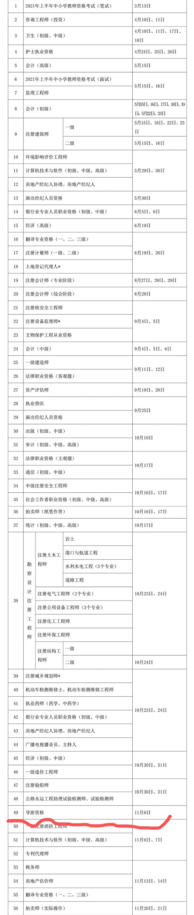 為做好專業(yè)技術(shù)人員職業(yè)資格考試規(guī)劃和管理工作,便于廣大專業(yè)技術(shù)人員參加職業(yè)資格考試,經(jīng)商有關(guān)部門同意,現(xiàn)就2021年度專業(yè)技術(shù)人員職業(yè)資格考試計劃及有關(guān)事項通知如下: