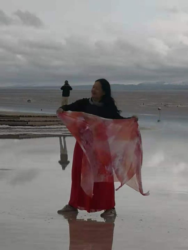 時速大約相當(dāng)于人的走路的兩倍到三倍,咣當(dāng)咣當(dāng)?shù)故遣坏⒄`欣賞一路風(fēng)景。目的地就是當(dāng)年鹽場采鹽的鐵路的盡頭。鹽水很淺,風(fēng)平浪靜,翠綠的鹵水倒影著遠(yuǎn)處的雪山,風(fēng)景剎是美麗,水也就是能沒到腳面,租他的膠鞋和紅色的裙子可以到鹽湖里面拍攝。紅色的裙子倒影非常漂亮,遠(yuǎn)處的云彩黑白相間。一朵一朵相擁而來,紅色的裙子,翠綠色的湖水,藍(lán)色的天空白色的雪山,真是如入仙境,大家操作無人機(jī)上下左右拍了無死角,兩個多小時瞬間過去,說好的是5點(diǎn)返程,6點(diǎn)了大家還意猶未盡,流連忘返。