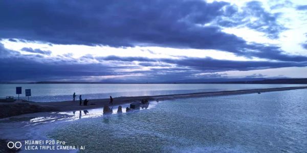 但是接近茶卡鹽湖的時候奇跡出現(xiàn)了,天放亮了,雨漸漸的小了,而我們進(jìn)入景區(qū)的時候,雨突然停了。太陽也越出了云層,向我們微笑著招手。大家歡呼了,真是上天保佑我們能看到鹽湖了。