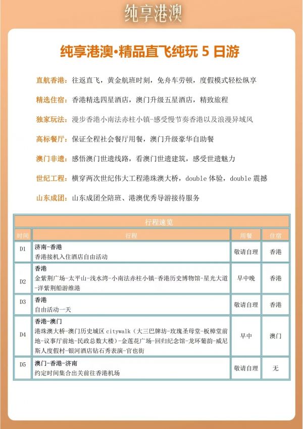 溫馨提示:請攜帶港澳通行證需在有效期內(nèi),本人身份證 (兒童如無身份證請帶好戶口本或出生證明) ,智能手機(jī),客人自行帶好港澳通行證及其他有效出行含有效簽注證件,如因客人沒有證件/無簽注。造成無法登機(jī)產(chǎn)生損失客人自行承擔(dān),個人原因無法出行機(jī)票不退任何費(fèi)用!澳門酒店一經(jīng)確認(rèn)不能取消或更改!入境小貼士----請準(zhǔn)備: