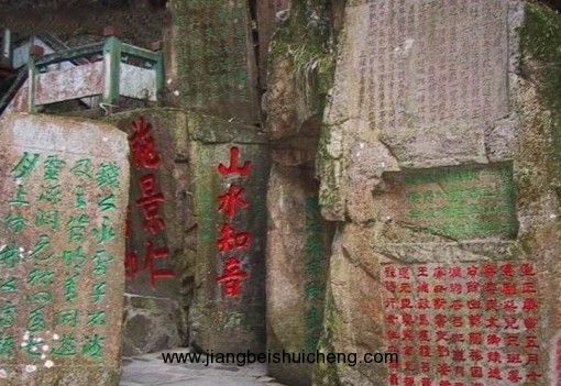 1.宋時(shí)徐錫之題喝水巖詩(shī):“重巒復(fù)嶺鎖松關(guān),只欠泉聲入座間;我若當(dāng)年侍師側(cè),不教喝水過他山” 認(rèn)為此處重巒疊嶂,不可無水;當(dāng)年要是他在,就會(huì)勸法師不要讓溪水改道。用反意評(píng)說歷史傳說,亦饒有風(fēng)趣。