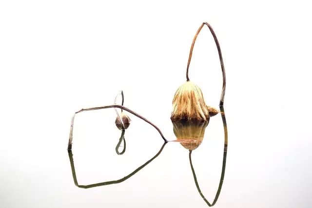 利用水中倒影來表現(xiàn)殘荷,使其增添一份凄清真實中帶著虛幻的味道。