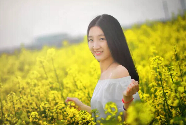 油菜花屬于清新系列的色調(diào),搭配的服裝,顏色一定選擇淺色系的,千萬不要想著去和花爭艷,穿個大紅大紫的。
