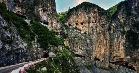 井底村著名的掛壁公路,全長(zhǎng)1500多米長(zhǎng)的“掛壁公路”, 39個(gè)窗口。是井底村人歷經(jīng)14年的時(shí)間,在懸崖峭壁上艱難地開鑿而成的。