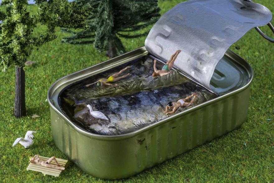 來(lái)自匈牙利布達(dá)佩斯的美食攝影師彼得近三年改變了以往的攝影風(fēng)格,他利用微縮模型、食物和日常用品搭配組合,創(chuàng)造了一個(gè)名為“Tiny Wasteland”(袖珍荒原)的攝影系列。