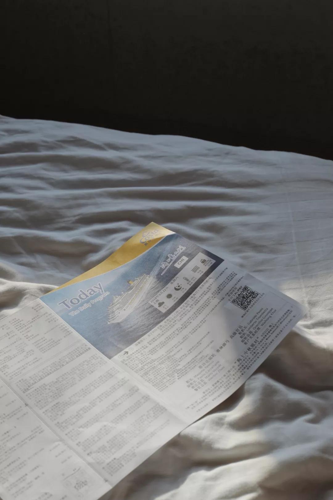 海上生活是與陸地現(xiàn)實(shí)世界的短暫分離,目之所及永遠(yuǎn)是碧波蕩漾的海水,但在賽琳娜號(hào),巡航的日子不會(huì)沉悶無(wú)聊。每天都會(huì)收到一份"Today"郵輪日?qǐng)?bào),指引著今日郵輪上所有精彩紛呈的活動(dòng)。