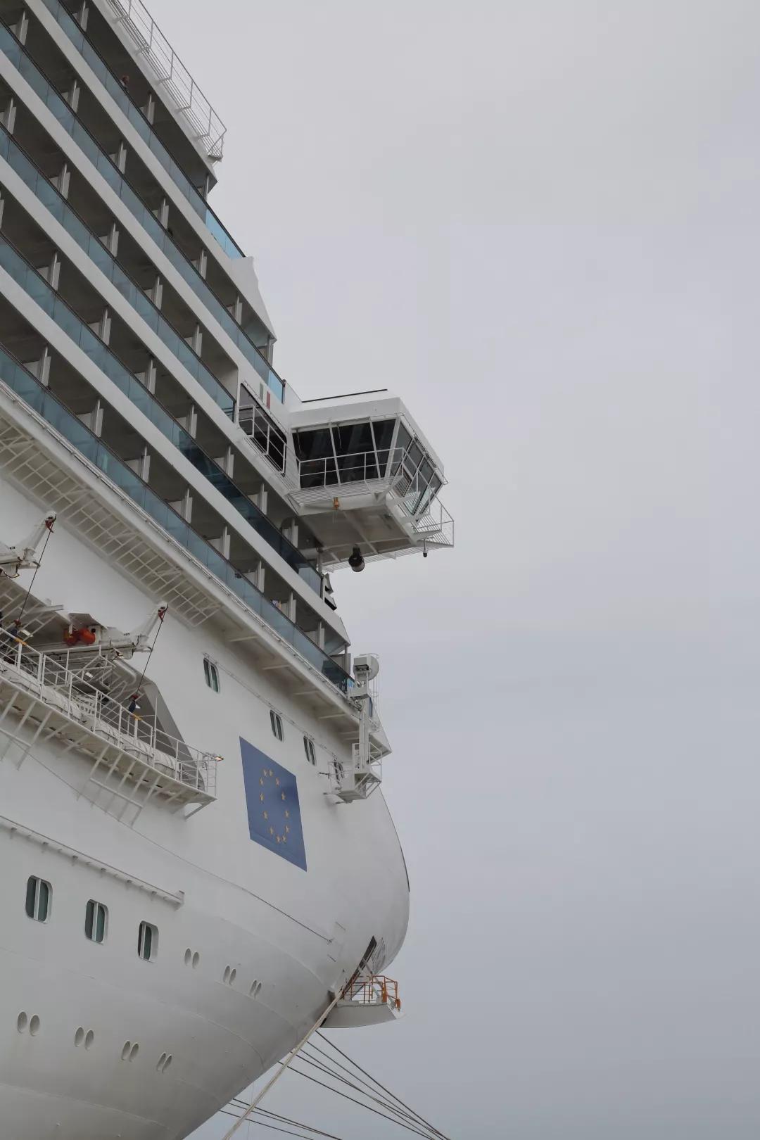 旅程第一天從上海吳淞口碼頭開(kāi)始,賽琳娜號(hào)明黃色的煙囪在晴空下格外矚目。