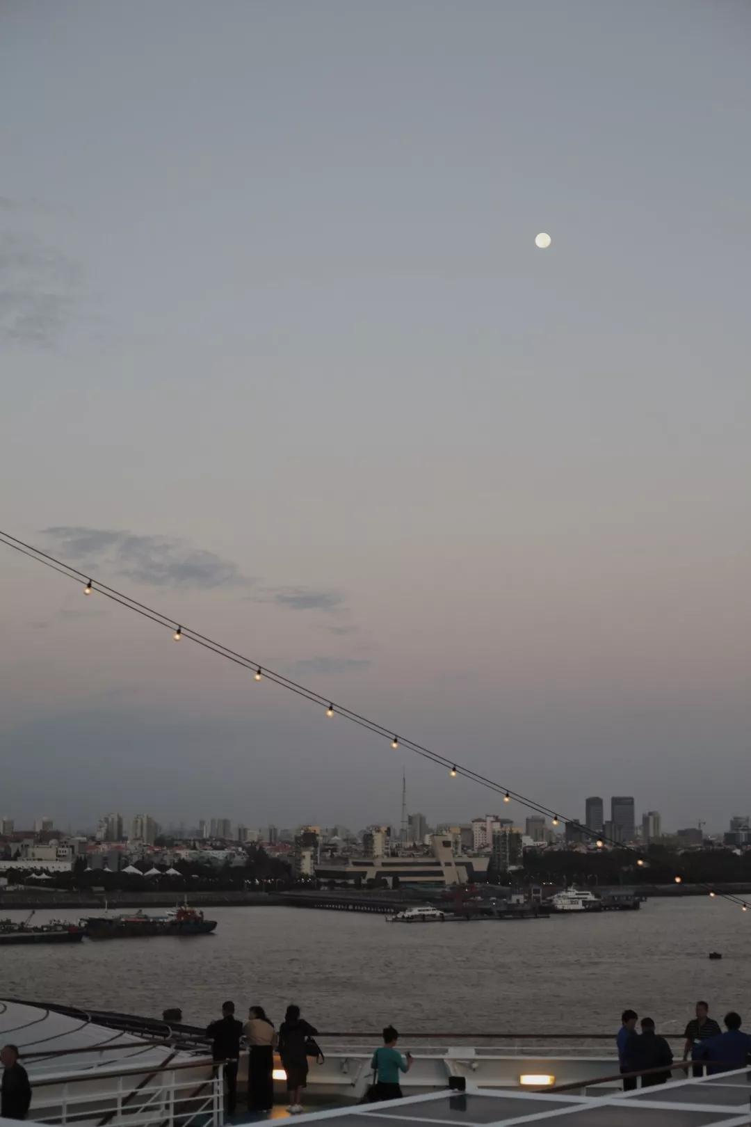 晚餐過(guò)后,登上甲板眺望茫茫大海。高懸的圓月穿透薄云,在海天相交處灑下一道朦朧的錦緞。浪花層層翻卷,交疊耳語(yǔ),耳邊明明有起伏的風(fēng)聲,心里仍覺(jué)得萬(wàn)籟俱寂,恍然從遠(yuǎn)方涌起德彪西寧?kù)o的和弦。