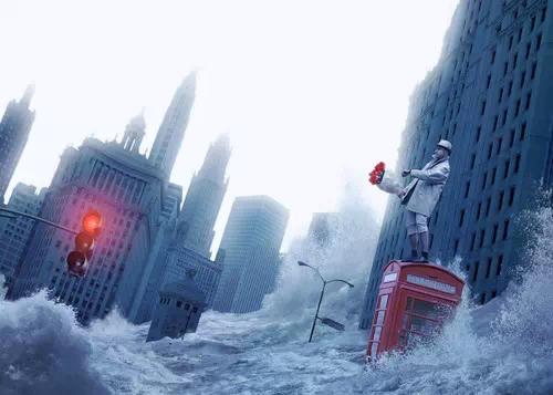 為什么這樣說(shuō)?因?yàn)楸绕鹚降牡仄骄€,略帶傾斜的地平線會(huì)更加具有動(dòng)感,比如下面這張海報(bào)圖(不是真實(shí)拍出來(lái)的,只是拿來(lái)做個(gè)例子),它沒(méi)有一個(gè)明確的水平線,但是根據(jù)建筑物來(lái)參考,很明顯它是傾斜的,感覺(jué)人物站不穩(wěn)隨時(shí)都要倒下去,這樣就營(yíng)造了一種緊張的氛圍,有助于表達(dá)情緒。