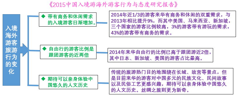 境外游客從本地入境,既要在本地旅游,又要到外省旅游,這個時候我們?yōu)槠湓O(shè)計的旅游產(chǎn)品既有本省旅游產(chǎn)品,又有外省旅游產(chǎn)品。