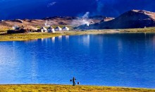 還可遠(yuǎn)眺公格爾峰(海拔7719米)、公格爾九別峰及具有“冰山之父”之稱的慕士塔格雪峰(海拔7546米)。經(jīng)過(guò)150公里的跋涉到達(dá)卡拉庫(kù)里湖畔(海拔3700米),在卡湖邊上感受高山湖泊的壯美和三峰映一湖的奇觀(三峰指公格爾峰、公格爾九別峰及慕士塔格雪峰)。還可以在湖邊騎馬,體驗(yàn)不一樣的牧民生活;