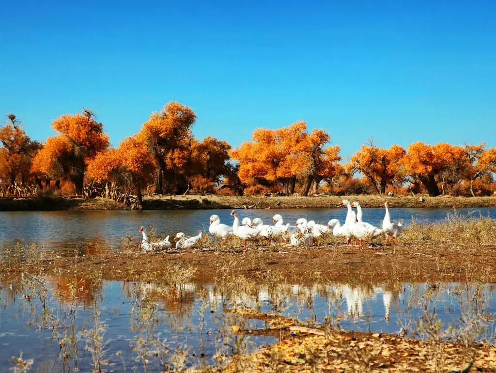 4、參觀【弱水金沙胡楊林景區(qū)】,前往居延海看【居延海日出】;
