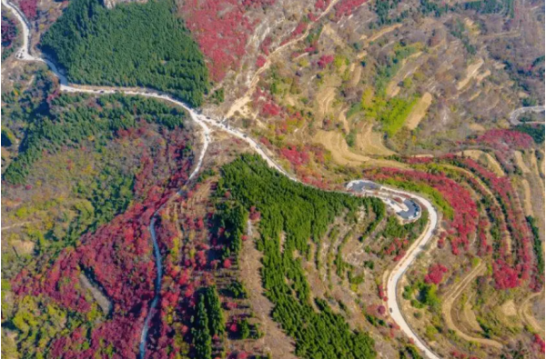 秋天的劈山和山村是最美的季節(jié),屆時劈山被漫山的紅葉覆蓋,正如山村火紅的未來!