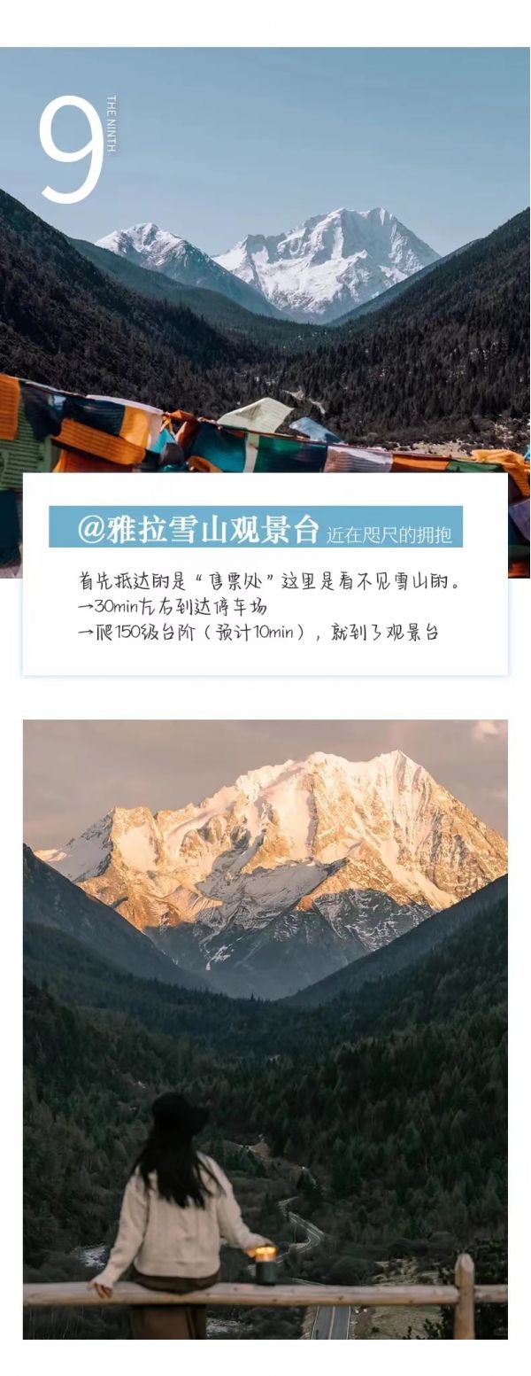 紅海子+魚子西+月亮湖+冷嘎措+墨石公園+雅拉雪山觀景臺(tái)+甲居藏寨+四姑娘山+雙橋溝?
