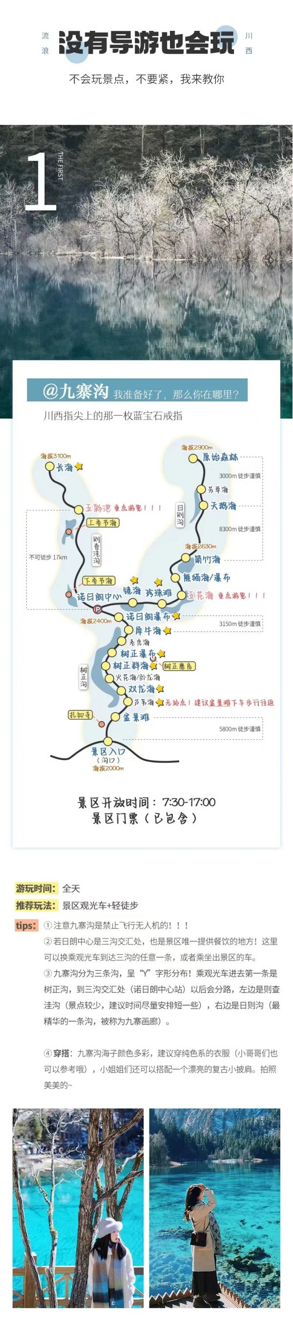 4、九寨溝景區(qū)實(shí)行分區(qū)域開放,開放區(qū)域?yàn)闇峡诮?jīng)諾日朗瀑布至長海,扎如溝的扎如寺及日則溝的鏡海;其中,長海、五彩池、鏡海、諾日朗瀑布、樹正群海、雙龍海瀑布、扎如寺等景觀原則上為步行游覽區(qū),具體游覽方式請聽從隨車講解員安排。