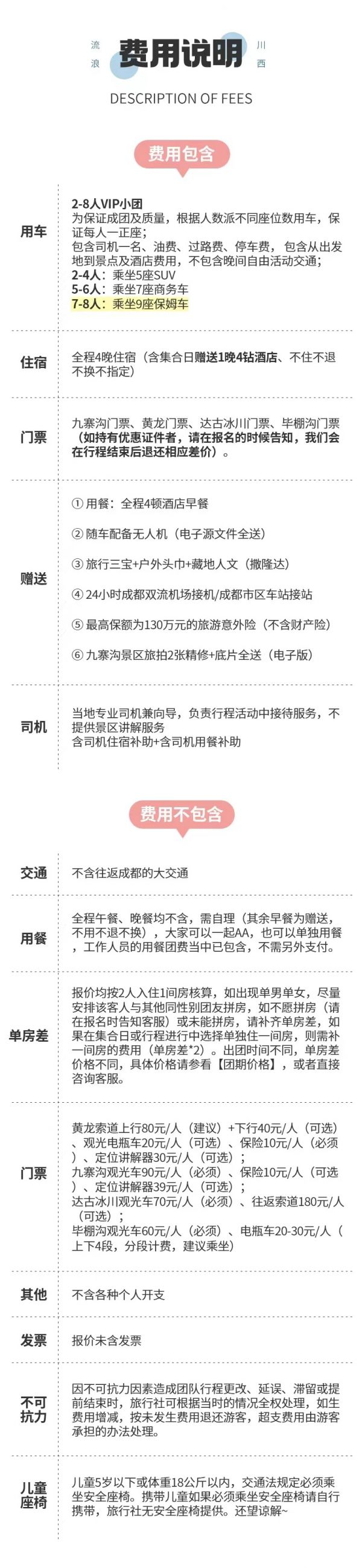 (1)受天氣、堵車等客觀因素影響,當(dāng)日回成都比較晚,請盡量不預(yù)訂當(dāng)天的返程機(jī)票或火車票,以免因?yàn)槎萝嚱o您帶來沒有必要的損失。