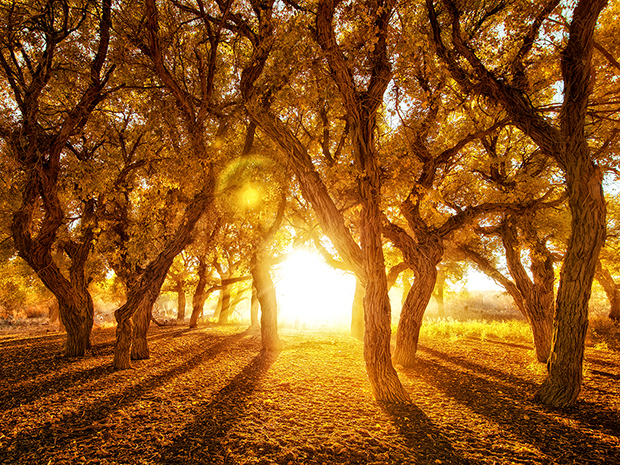到了10月15號(hào)左右,隨著寒風(fēng)的到來,一樹的絢爛又將變成滿地金黃。等胡楊樹葉子落盡,美景不在,只有再等待第二年的秋天。