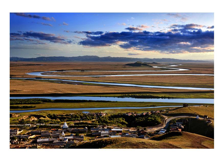 九曲黃河第一灣位于若爾蓋縣唐克鄉(xiāng),距縣城61公里。地處草原腹心地帶,白河于此匯入黃河,形成浩大氣勢(shì)。河面寬而蜿蜒,曲折河水分割出無(wú)數(shù)河洲、小島,水島翔集、漁舟橫渡,被中外科學(xué)家譽(yù)為“宇宙中莊嚴(yán)幻影”。黃河第一彎地勢(shì)平坦,水流舒緩,小島、岸邊紅柳成林。索克藏寺院修筑于黃河第一彎山凹臨河處,版權(quán)所有山東聊城聊之旅國(guó)際旅行社有限公司,轉(zhuǎn)載必究!白塔古寺,帳篷炊煙相伴黃河,更顯自然悠遠(yuǎn)博大。