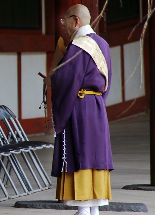 為國(guó)家和萬民悔過,須有特定的集團(tuán)和大型儀式。因此,由僧團(tuán)共同舉行法會(huì)以悔過,修二會(huì)便是其中的儀式之一。僧侶被稱為“練行眾”,現(xiàn)在由11人組成,分工各不相同。授戒師、大導(dǎo)師、結(jié)印誦唱陀羅尼咒的咒師,及總管修二會(huì)內(nèi)外雜務(wù)的堂司等4人被稱為四職,其余7人名平眾,而且還有許多人輔佐練行眾,直接參加法會(huì)的人多達(dá)30余名。