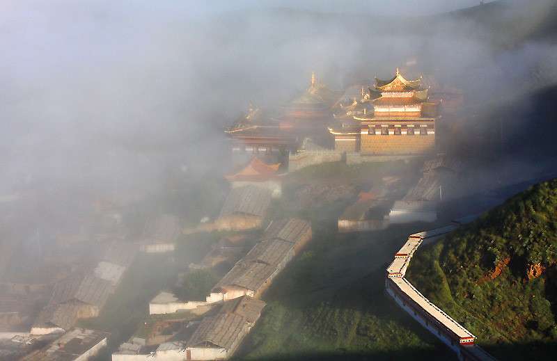登上索克藏寺背后播箭的山頂,運眺索克藏寺『索格藏寺藏語為“扎西特欽倫”,意為吉祥大乘洲,位于九曲黃河第一灣處。始建于1658年,面積7.6萬平方米,僧侶200余人。版權所有山東聊城聊之旅國際旅行社有限公司,轉載必究!寺院建筑、宏偉壯觀,各殿陳列有金、銀、木、泥質的佛像、神像千余尊』。和九曲黃河第一彎,黃河仿佛從天邊曲曲繞繞一路走來,沒有氣勢磅礴,沒有濁浪滔天,聽不到驚濤拍岸的濤聲,也看不到高出地表的堤岸,始終情意綿綿地彎曲迂回于唐克金銀灘,猶如一道道流暢的飄帶。