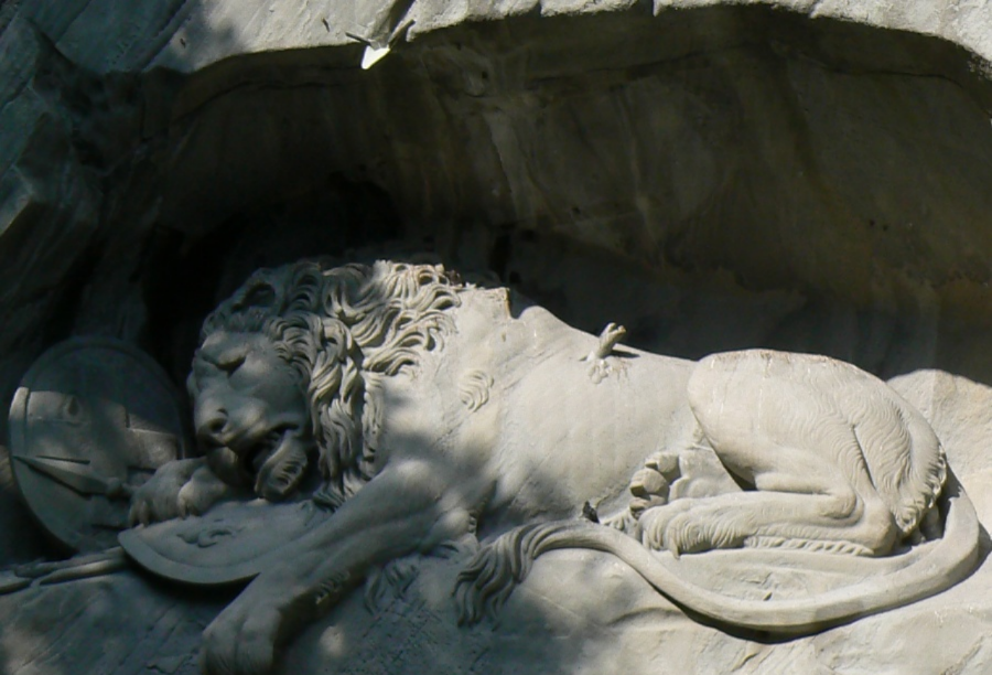 獅子紀念碑(Lion Monument)是琉森(盧塞恩)數(shù)一數(shù)二的雕刻作品,一支箭深深地插進了瀕臨死亡的雄獅背上,獅子面露痛苦的神情,前爪按盾牌和長矛,盾牌上有瑞士國徽。