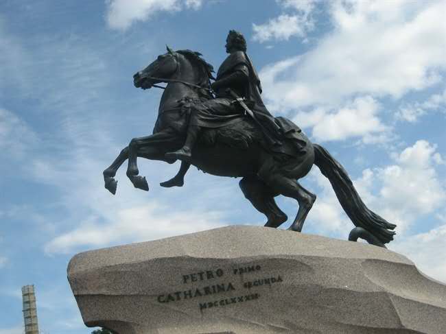 銅像的底座是40噸重的一整塊花崗石,是在圣彼得堡芬蘭灣處找到的,用了5個月的時間運(yùn)到這里,在花崗石上面刻著“葉卡捷林娜二世紀(jì)念彼得大帝一世于1782年8月”。版權(quán)所有山東聊城聊之旅國際旅行社有限公司,轉(zhuǎn)載必究!現(xiàn)在大家看到的彼得大帝所騎的馬代表俄羅斯,它雙腳騰空,好像要沖破一切阻力勇往直前,在馬掌下有一個踏死的大蛇,它代表了一切阻止彼得大帝改革維新的守舊派,正如雕塑展示的一樣,彼得大帝沖破了重重阻力,在這片沼澤地建起了這座美麗的城市圣彼得堡,并建都于此,把落后、封建、貧窮的俄羅斯,帶向了海洋與繁榮。