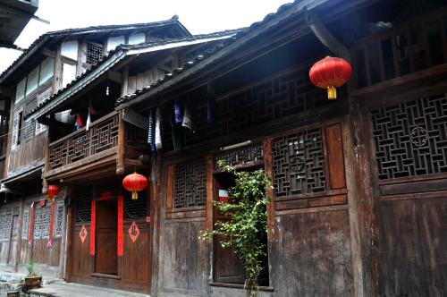 在龔灘,冉是大姓,冉家院子,已有三百年歷史。它四周封閉,進(jìn)入其中,有置身徽派民居的感覺(jué)。但是與徽派民居不同,它一面是開(kāi)放的,吊腳樓廊伸向街面,正房和廂房都是穿斗式結(jié)構(gòu),都是龔灘地道的建筑風(fēng)格。