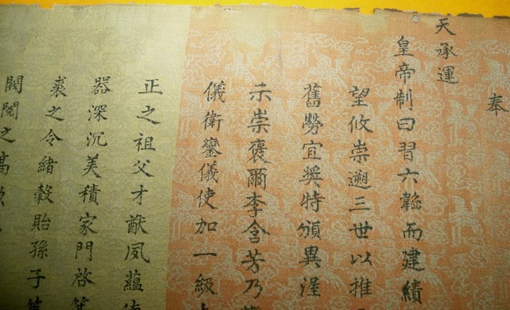 博物館館長劉新華先生介紹,這處“圣旨”博物館為二層仿古建筑,展出面積1000多平方米,館藏明代、清代的詔書、國書、誥封、敕封(通稱為圣旨) 達(dá)132道之多,開館展出的“圣旨”55道,以及“偽滿洲國圣旨”和日本、越南、韓國等國家的“圣旨”,并配以明清時期的科舉試題、殿試卷、官場文書、字畫匾牌及用墨魚汁做墨汁密寫在衣衫內(nèi)的“夾帶小抄”等科舉文物2000多件,反映了當(dāng)時的政治、經(jīng)濟(jì)、軍事、外交及中國宮廷文化等多種形態(tài)。
