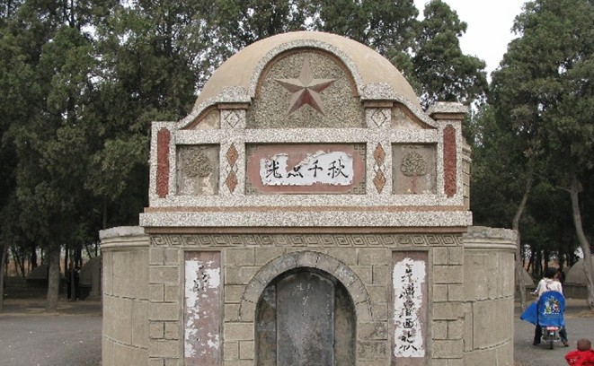 聊城市境內(nèi)最大的革命烈士陵園。亦名丈八烈士陵園位于莘縣大王寨鄉(xiāng)丈八村。始建于1945年。占地面積約6公頃,南北長740米,東西寬170米。陵園坐北朝南,主要有門樓、紀念塔、紀念室、烈士墓組成。門樓為古典式建筑,1957年重建。紀念塔高16米,四面八角,樓閣式磚木結(jié)構(gòu),建筑面積100平方米。第二層塔壁鑲嵌著8面石碑,刻有當時冀魯豫邊區(qū)黨、政、軍領(lǐng)導人書寫的碑文和為革命犧牲的925位烈士的英名錄、烈士傳略。