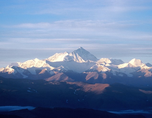 珠穆朗瑪峰是世界最高大的山系喜馬拉雅山的主峰,海拔8,844.43m,為世界第一高峰。珠穆朗瑪為藏語(yǔ)的音譯,意為“女神第三”。山體呈金字塔狀,山上冰川面積達(dá)1萬(wàn)平方公里,最長(zhǎng)之冰川達(dá)26km。山峰上部終年為冰雪覆蓋,地形陡峭高峻。是世界登山運(yùn)動(dòng)矚目和向往的地方。山間有孔雀、長(zhǎng)臂猿、藏熊、雪豹、藏羚等珍禽奇獸及多種礦藏。