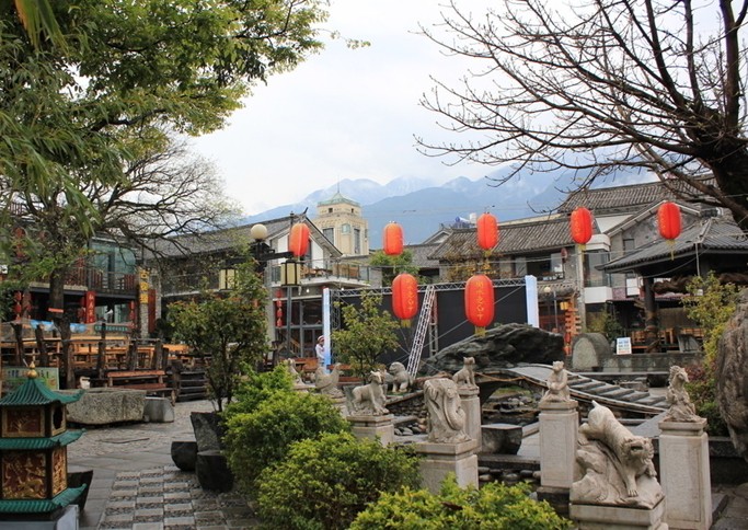 大理古城東臨碧波蕩漾的洱海,西倚常年青翠的蒼山,形成了“一水繞蒼山,蒼山抱古城”的城市格局。從779年南詔王異牟尋遷都陽苴咩城,已有1200年的建造歷史?,F(xiàn)存的大理古城是以明朝初年在陽苴咩城的基礎(chǔ)上恢復(fù)的,城呈方形,開四門,上建城樓,下有衛(wèi)城,更有南北三條溪水作為天然屏障,城墻外層是磚砌的;城內(nèi)由南到北橫貫著五條大街,自西向東縱穿了八條街巷,整個(gè)城市呈棋盤式布局。