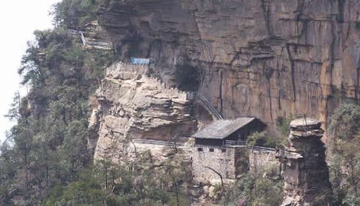 海拔 1122米,清末自民國時則土匪盤踞于此,版權所有山東聊城聊之旅國際旅行社有限公司,轉載必究!留有27步石級,寨上有孤寨懸梯、悍匪窟穴等殘跡。