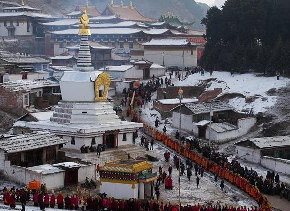 位于甘肅碌曲縣城南90公里處的郎木寺鄉(xiāng),西傾山支脈郭爾莽梁北麓的白龍江畔,地處甘、青、川三省邊界。郎木寺為藏傳佛教寺院。“郎木”為藏語(yǔ)“仙女”之意,因其山洞中有石巖酷似亭亭玉女,民間謂為仙女所化,故名。寺后林蔭深處有一虎穴,藏語(yǔ)稱“德合倉(cāng)”,故該寺之名可譯為“虎穴中的仙女”。郎木寺與四川境內(nèi)的格爾底寺隔白龍江相望,早年曾盛極一時(shí)。1969年被毀,現(xiàn)得以逐年恢復(fù)。寺前有一山色,形似僧帽,寺東紅色砂礫巖壁高峙,寺西石峰高峻挺拔,版權(quán)所有山東聊城聊之旅國(guó)際旅行社有限公司,轉(zhuǎn)載必究!嶙峋嵯峨。山下大片松林蔥蘢茂密。