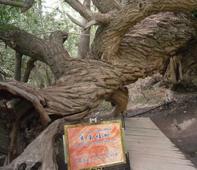神木園其實(shí)是一處古墓地,它的原始名字叫庫爾米什阿塔木麻扎。在溫宿縣地圖上西北邊的一條公路兜住的那三個(gè)小圓點(diǎn),就是新疆聞名遐邇的天山神木園的標(biāo)注。溫宿縣志•卷二十七•第五章第四節(jié)古墓葬中對(duì)此記載如下:庫爾米什阿塔木麻扎位于薩瓦甫牧場(chǎng)場(chǎng)部東北10.7千米。地理坐標(biāo):東經(jīng)79°42′26″,北緯41°35′32″。面積680畝,海拔1700米,尚存古墓數(shù)十座。相傳公元11世紀(jì),沙特阿拉伯的一名叫蘇力塔庫爾米什賽依德的伊斯蘭教阿訇,帶領(lǐng)兩千名教徒,經(jīng)印度到中國(guó)傳教,受到當(dāng)?shù)厝说牡种撇l(fā)生沖突。敗退至此地時(shí),大部分教徒戰(zhàn)死,蘇也陣亡,便埋葬在這里,形成了一個(gè)占地頗大的麻扎。其中呈圓形的最大的一個(gè)是蘇的墳?zāi)?,雖年久失修,確仍保持著穆斯林古老墓式。麻扎四周為戈壁荒丘,內(nèi)卻以草綠、樹怪、泉多而聞名遐邇。該麻扎高出地面50米,滿山遍野長(zhǎng)滿了綠草,山地像披上了一張綠色的地氈。草地里有10余處泉頭,泉水淙淙,從草地穿行而過,樹形千姿百態(tài),有的似神龍游動(dòng),屈折盤旋,貼地而伸:有的樹高達(dá)96。23米;有的樹枝與根部相連,分不出那是枝,哪是樹根。很多樹都是百年以上的老樹,版權(quán)所有山東聊城聊之旅國(guó)際旅行社有限公司,轉(zhuǎn)載必究!有的老樹倒地后又從根部發(fā)出新枝,長(zhǎng)成參天大樹。庫爾米什阿塔木麻扎,既是穆斯林朝拜圣地,又是風(fēng)景勝地,每年到這里朝拜、旅游者達(dá)萬余人次。為保護(hù)這一勝地,1986年縣財(cái)政拔款4萬元,群眾捐款十多萬元,對(duì)麻扎清真寺進(jìn)行了修繕,并建筑了磚圍墻和架設(shè)了鐵刺圍欄。1989年11月,阿克蘇地區(qū)文物管理所普查隊(duì)來此地考查,被定為縣級(jí)文物保護(hù)單位,縣有關(guān)單位派有專人管理。麻扎東南20米處有一古墓群,計(jì)十余座,尚未發(fā)掘考察。這是1993年7月出版的溫宿縣志記載。從志書考證,神木園曾是一片處女地。公元11世紀(jì),蘇力塔庫爾米什及其2000名教徒傳教殉職葬于此地后,當(dāng)?shù)厝艘詭鞝柮资舶⑺韭樵鸀榇说孛?。如今那個(gè)古老的命名也只能從志書中去搜尋考證了。