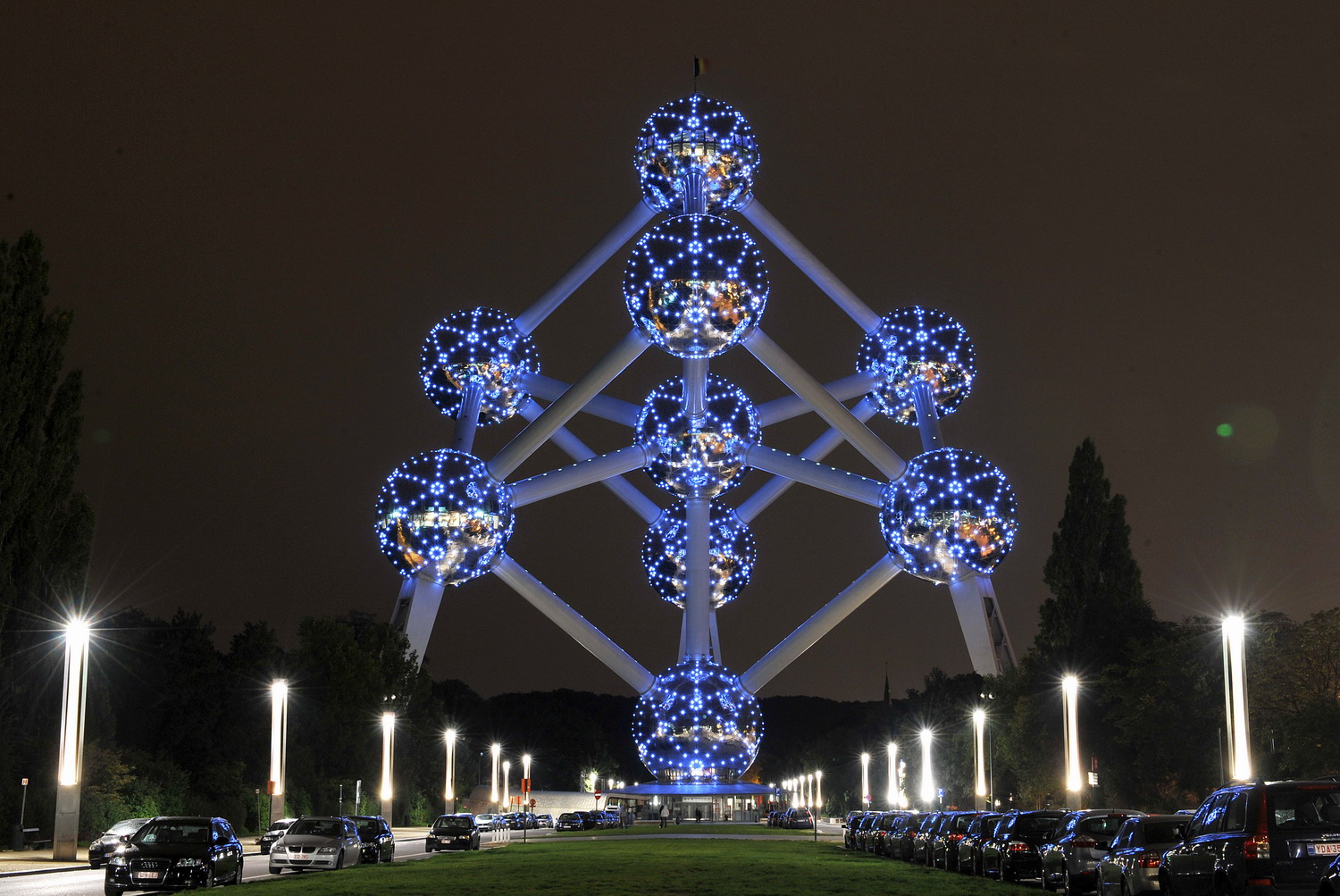 原子球 為比利時(shí)1958年在此地的展覽中心舉辦的布魯塞爾博覽會(huì)所設(shè)計(jì)的標(biāo)志建筑。設(shè)計(jì)者希望通過(guò)這一巨大的建筑表達(dá)微小的原子概念,并顯示人類和平利用原子的前景。構(gòu)思來(lái)源于原子結(jié)構(gòu)圖,九個(gè)巨大的金屬圓球由粗大的鋼管連接構(gòu)成一正方體圖案。版權(quán)所有聊城聊之旅國(guó)際旅行社有限公司,轉(zhuǎn)載必究!正方體的大小相當(dāng)于放大了1650億倍的鐵的正方體晶體結(jié)果。八個(gè)圓球位于正方體的八個(gè)角,另一個(gè)圓球位于正方體的中心。圓球直徑18米,連接各個(gè)球間的鋼管每根長(zhǎng)26米,直徑3米??傊?200噸,高102米??沙穗娞莸竭_(dá)離地100米高的頂端圓球觀賞布魯塞爾的風(fēng)景。其他圓球中為各種主題的科技展覽廳。分別陳列有太陽(yáng)能、和平利用原子能、航天技術(shù)、天文等方面的展品,以及有關(guān)比利時(shí)氣象事業(yè)的發(fā)展史、衛(wèi)星氣象、氣象雷達(dá)、氣象通訊方面的圖表。