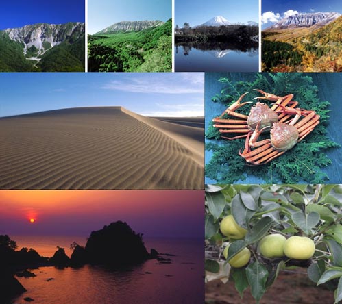 鳥(niǎo)取縣位于日本列島本島的西端,中國(guó)地方的東北部,是全日本人口最少的縣,因盛產(chǎn)“二十世紀(jì)梨”和“富有柿”而聞名于日本。土地面積占日本總面積不足1%,近90%土地為山地,由山地流向日本海的日野川、天神川、千代川等,分別在下游形成米子、倉(cāng)吉、鳥(niǎo)取三平原,擁有日本最大的大自然人工天成的沙丘鳥(niǎo)取沙丘。氣候相對(duì)溫暖,從春到秋多晴天,冬天有降雪,四季變化鮮明。主要產(chǎn)業(yè)有電機(jī)、食品、紙漿、造紙、金屬制品等。海岸線長(zhǎng)約一百三十公里,海岸平緩,有很多天然良港,漁業(yè)發(fā)達(dá)。