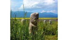 三海子墓葬及鹿石位于新疆維吾爾自治區(qū)青河縣查干郭愣鄉(xiāng)三海子夏牧場(chǎng),為青銅時(shí)代的一處墓葬,距今約4000年。在面積約16.25平方公里地域的四個(gè)分布區(qū)內(nèi)計(jì)有石圍石堆墓、石棺墓30余座,鹿石19通。什巴爾庫(kù)勒石圍石堆墓,石堆直徑78米,殘高25米;石圍直徑210米,寬3~5米。石堆與石圍之間有四條片石鋪成的通道,最寬的通道達(dá)1.6米。墓環(huán)水而建,氣勢(shì)宏偉,結(jié)構(gòu)獨(dú)特,是歐亞草原少有的特大規(guī)模墓冢之一。